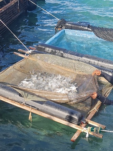 Seabream fingerlings in cages to be release at the blue Bay Marine park